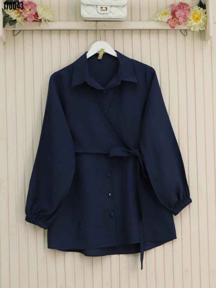 - Çapraz Bağlamalı Kolu Lastikli Düğmeli Gömlek Laci