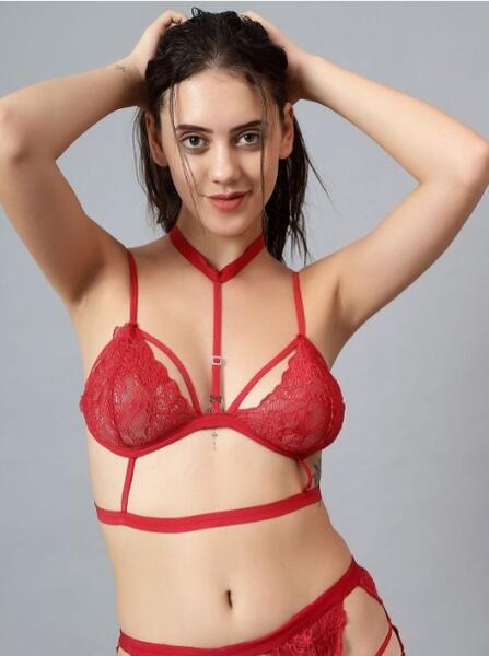 Dantelli Bant Detaylı Sütyen ve Jartiyerli Külot Takımı