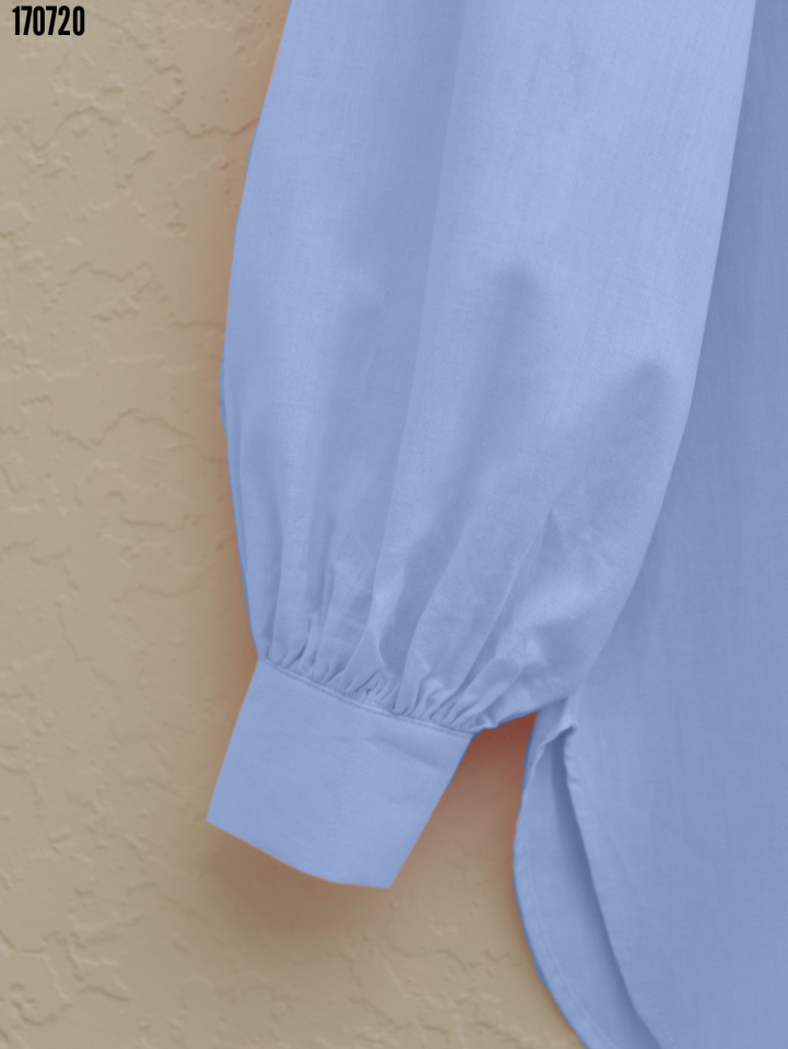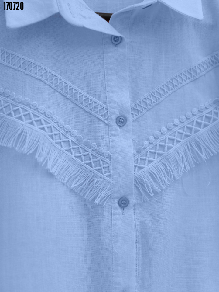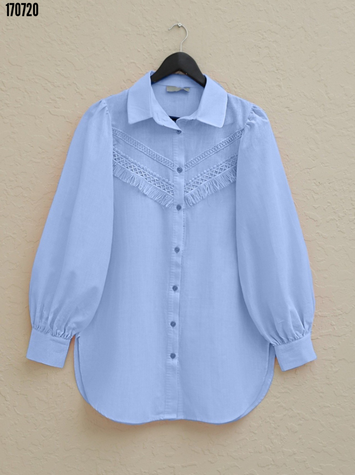 - Güpür Püsküllü Ham Keten Balon Kol Gömlek Bebe Mavi