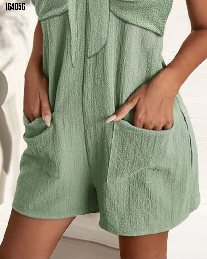 - Kadın askı aksesuarlı önü bağlama detay salopet şort tulum