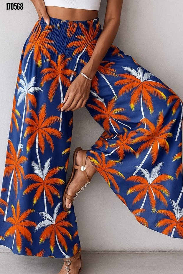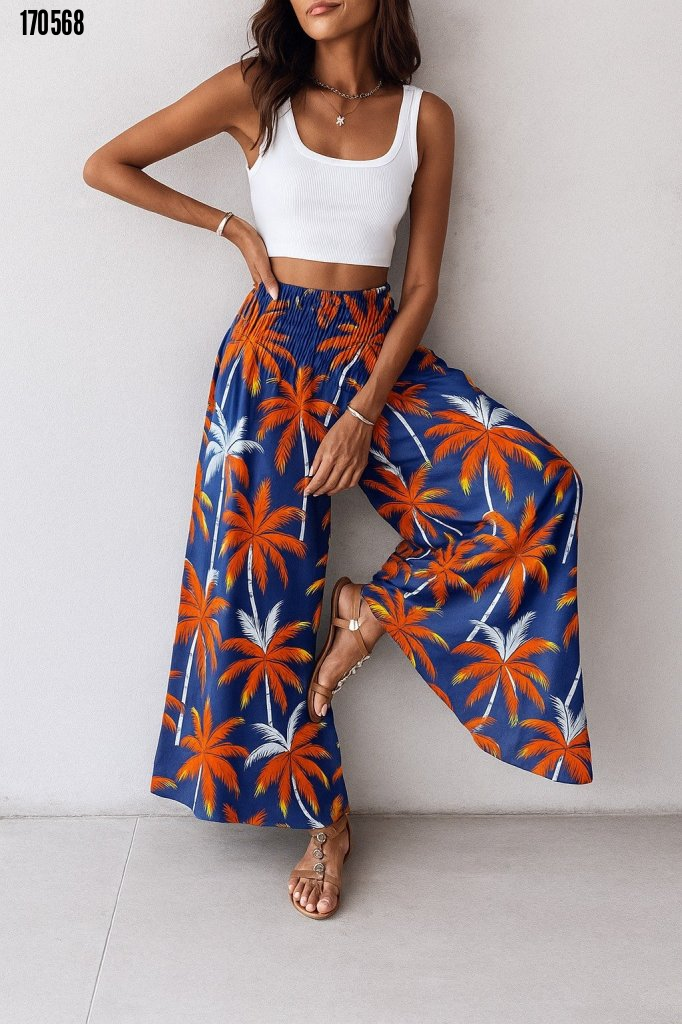 - Kadın yüksek bel lastikli desenli süprem pantolon