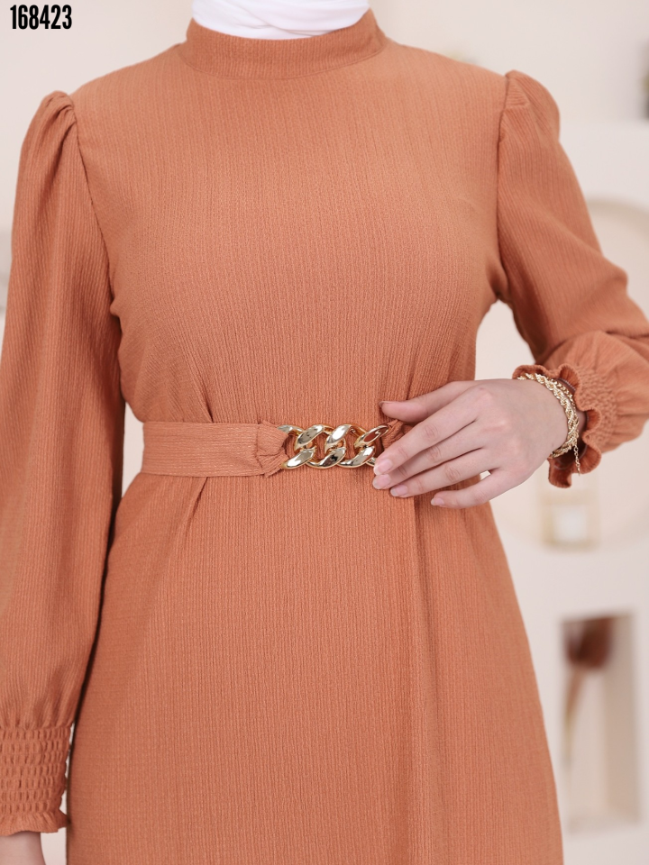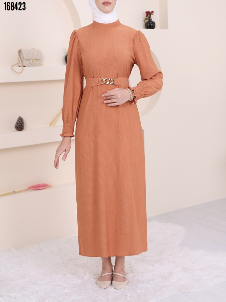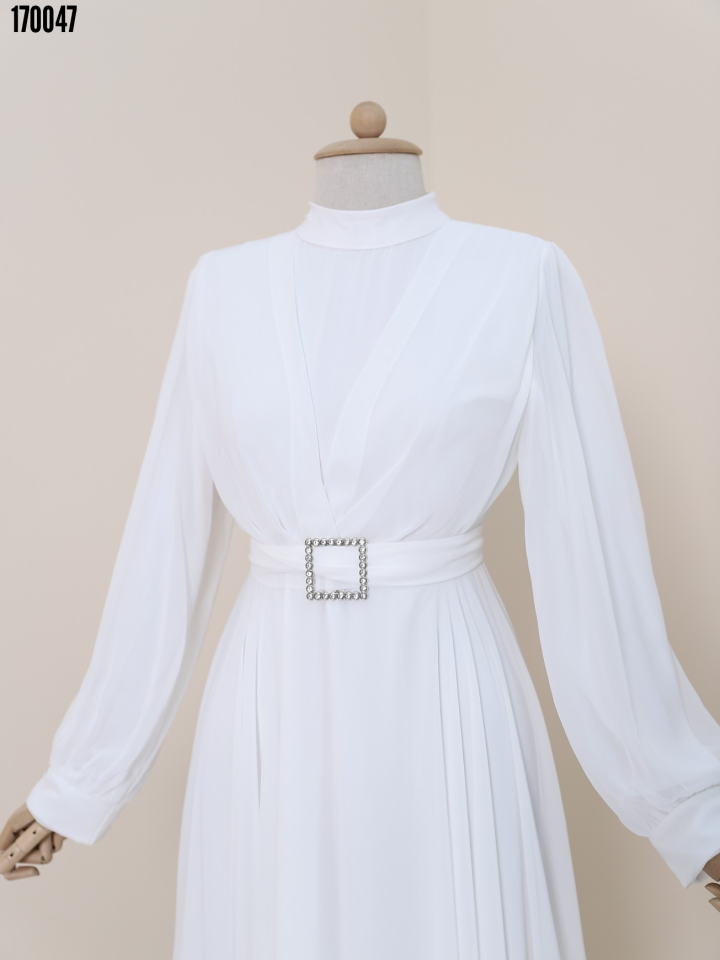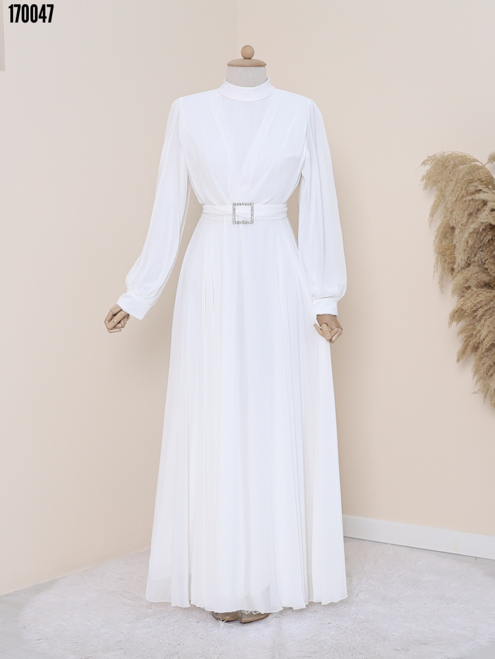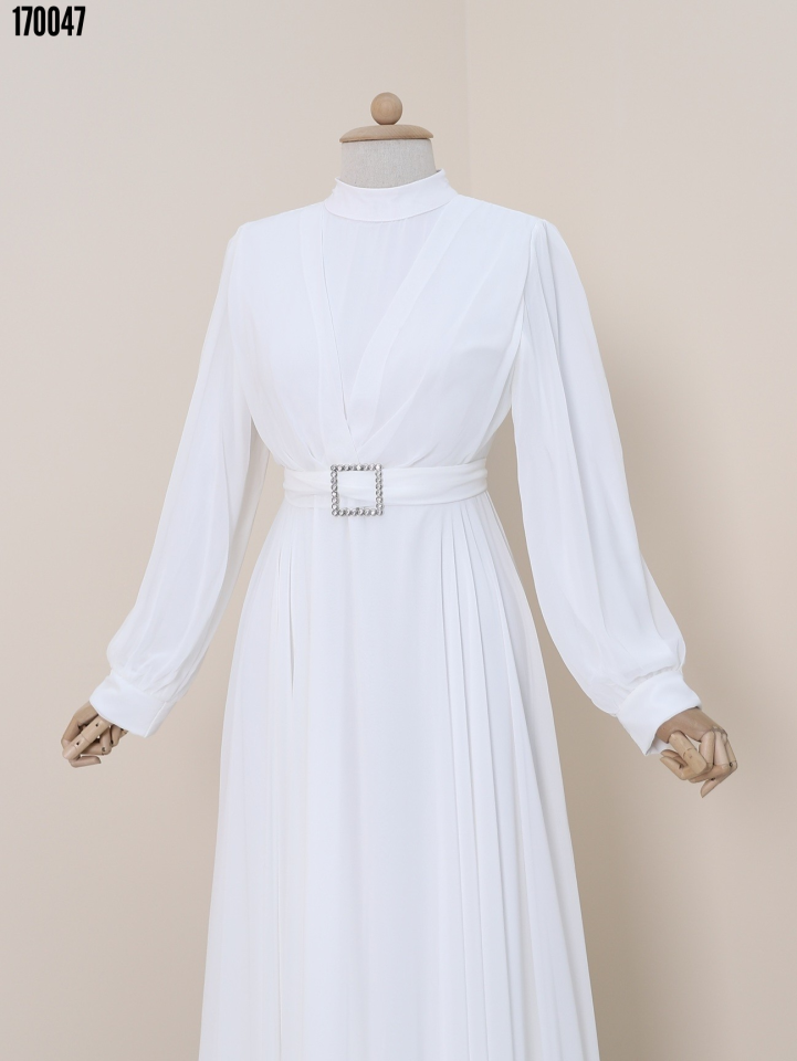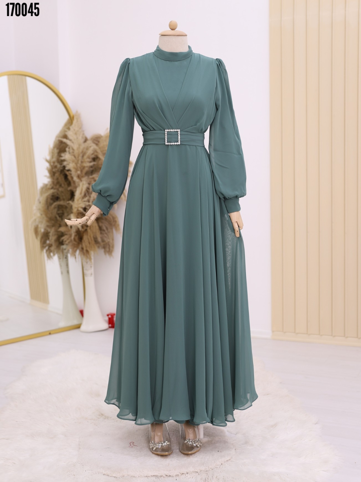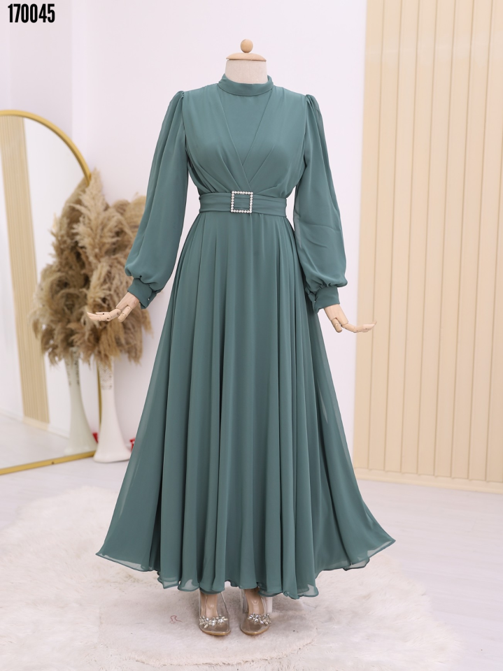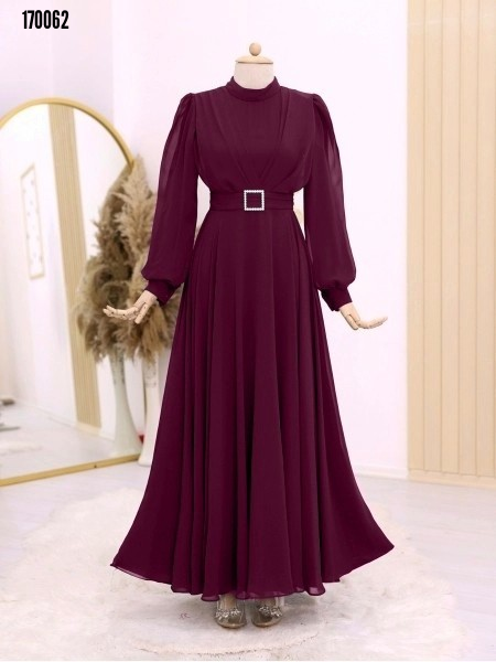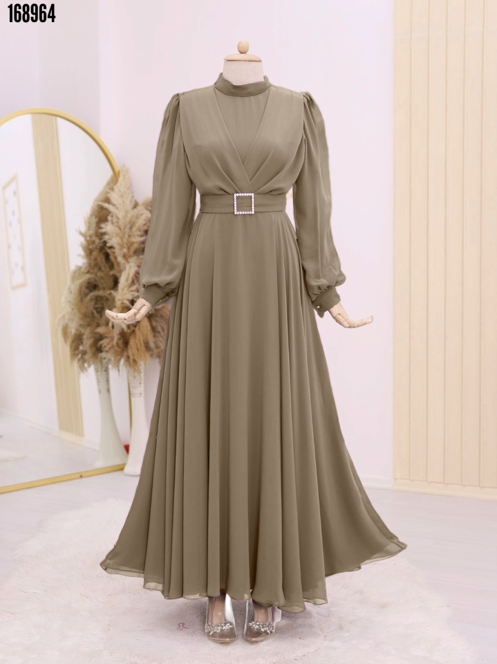 - Kemeri Taşlı Önü Pileli Tesettür Elbise