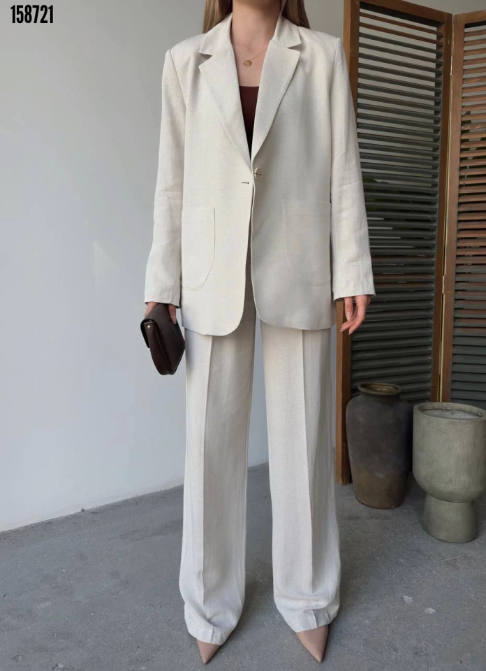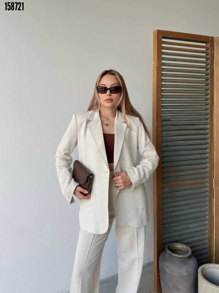 - Keten Ceket Pantolon ikili Takım Beyaz